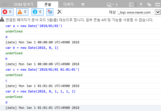결론은, IE5~8은 '-' 구분자의 String 선언은 정상적으로 되지 않고IE9부터 지원이 되기 때문에 '/' 구분자의 String 형태로 선언을 하던가 Number 형태로 선언을해서 사용을 하시면 될것 같습니다!